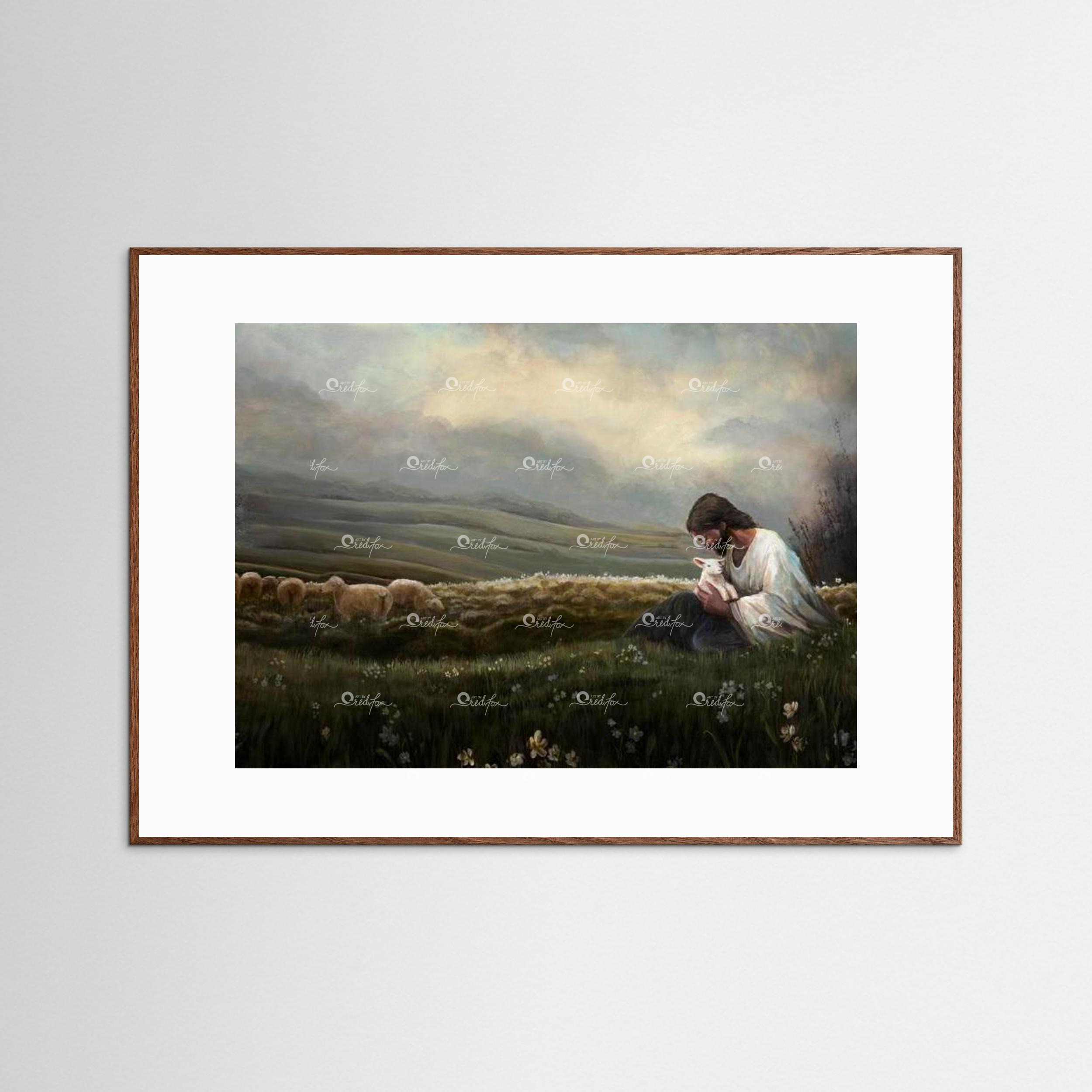 Forget Me Not is more than a painting—it’s a quiet testimony. I created it recently, but it reflects something much deeper: a tender season from the early days of motherhood, when I often felt like I was just pretending to know what I was doing. I named the little lamb in His arms Lilly, after my daughter—because during those overwhelming days, I read the verse “Consider the lilies of the field…” and felt God whisper, You don’t have to worry so much. I’ve got you.